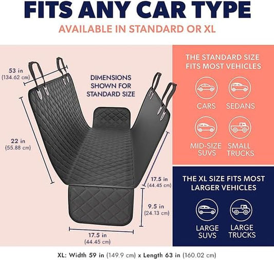 Dog Car Seat Cover for Back Seat - Waterproof Dog Car Seat Cover SUV - Car Seat Cover for Dogs - Back Seat Protector for Dog - Dog Hammock for Car, Dog Seat Cover for Truck (Large, Black)
