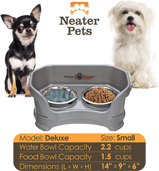 Neater Feeder - Deluxe Model - Mess-Proof Dog Bowls (Small, Gunmetal Grey) - Made in USA - Elevated, No Spill, Non-Tip, Non-Slip, Raised Stainless Steel Food & Water Pet Bowls